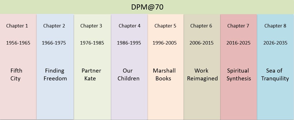 life map of my first six decades, giving each one a title, and wrote some